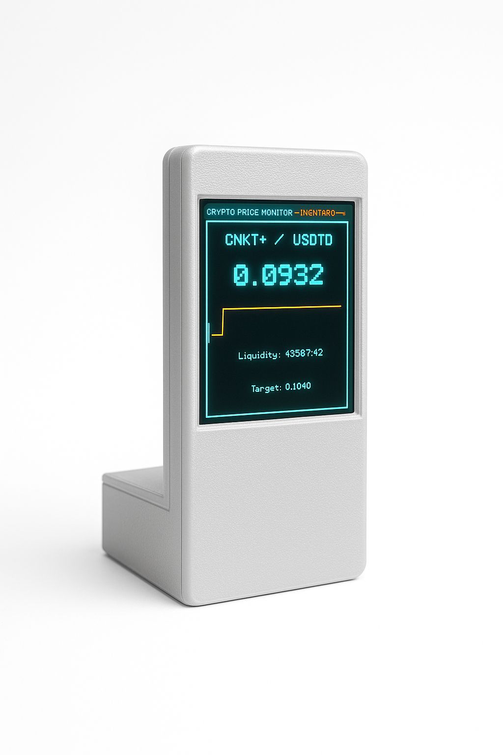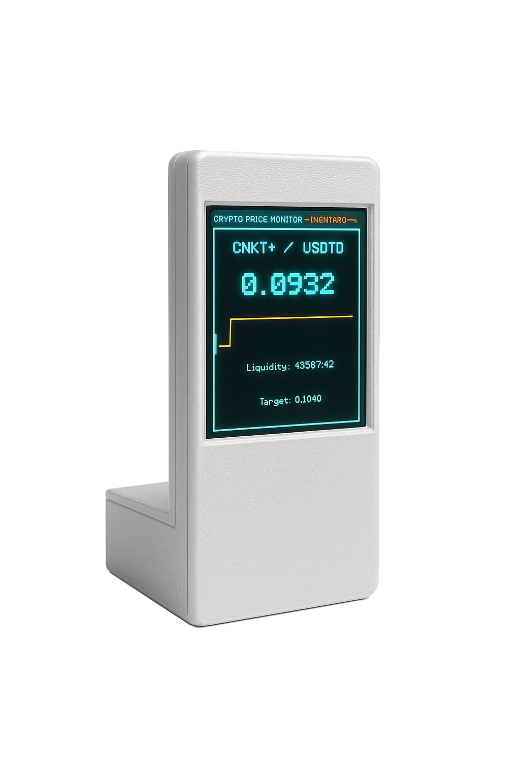 Software profesional optimizado para pantallas TFT de 2.8" con diseño futurista estilo TRON. Muestra precio en tiempo real, mini-grafica, objetivos de precio y alertas visuales, todo desde tu escritorio.
